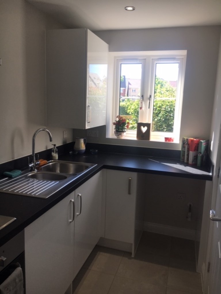 A stylish 2-bedroom terrace house, with a large open plan living and dining area with double doors out to the garden. Separate kitchen to the front of the property. Upstairs has two double bedrooms, the master having a double wardrobe with sliding doors.