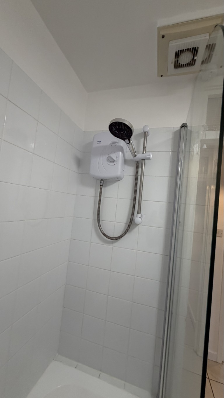 The bedroom (9'5" x 8'11") is a comfortable double room with a uPVC double-glazed window to the side and an electric heater.