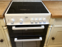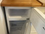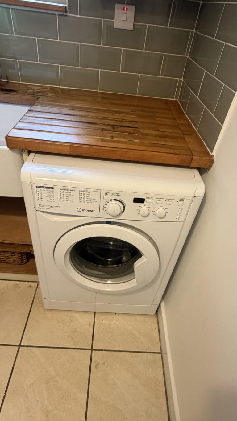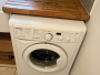 The modern kitchen (3.8m x 1.9m) is fitted with a range of eye- and base-level units complemented by attractive pine work surfaces and a Belfast-style steel sink with mixer tap. Appliances include an electric oven with stainless steel canopy hood, washing machine, and under-counter fridge freezer. A uPVC double-glazed window provides natural light from the side aspect.