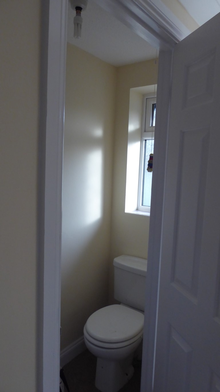 Door to: Cloakroom Suite comprising of low-level WC and wash hand basin with tiled splashback. Radiator. Opaque double-glazed window to front aspect.