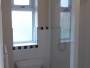 Paved path leading to entrance door. Garden mainly laid to lawn.
